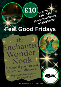 A monthly session focussing on positive mental health and emotional resilience. These monthly deep breathing and imaginative guided imagery sessions will guide children through a fully immersive meditation experience enveloping all the senses. There will be a different theme each month using sounds , smells and guided imagery to produce deep relaxation and leave the world , the week and normal life behind for an hour. “SSSH ! Do you hear that?The leaves outside are whisperingthe stars are stretching their toesAnd the air is filled with tiny invisible sparkles You have just stepped into a secret space – a place where stories live and dreams like to wander.This is NO ordinary room ,